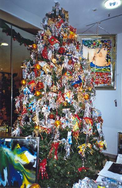 ![]() Der von mir aus Abfall dekorierte Weihnachtsbaum. |