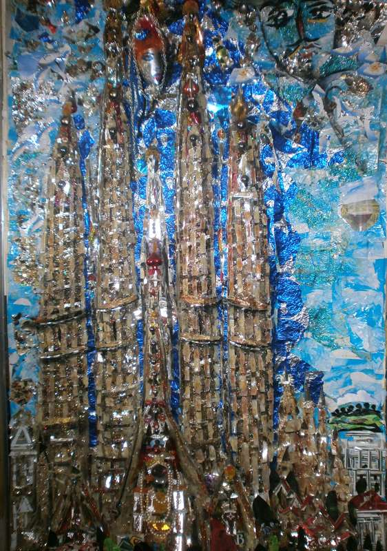 Sagrada Família in Barcelona gestaltet aus Katzenaugen, Hologrammen und Dosen.