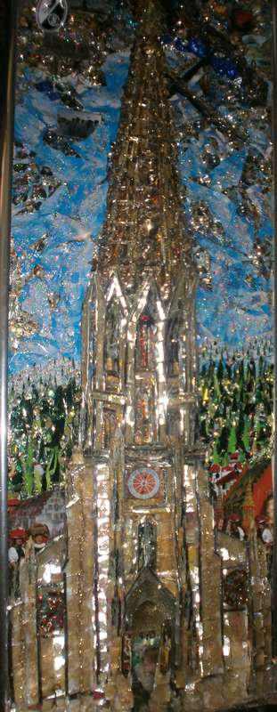 Freiburger Münster neu dreidimensional gestaltet aus Katzenaugen, Hologrammen und Dosen.